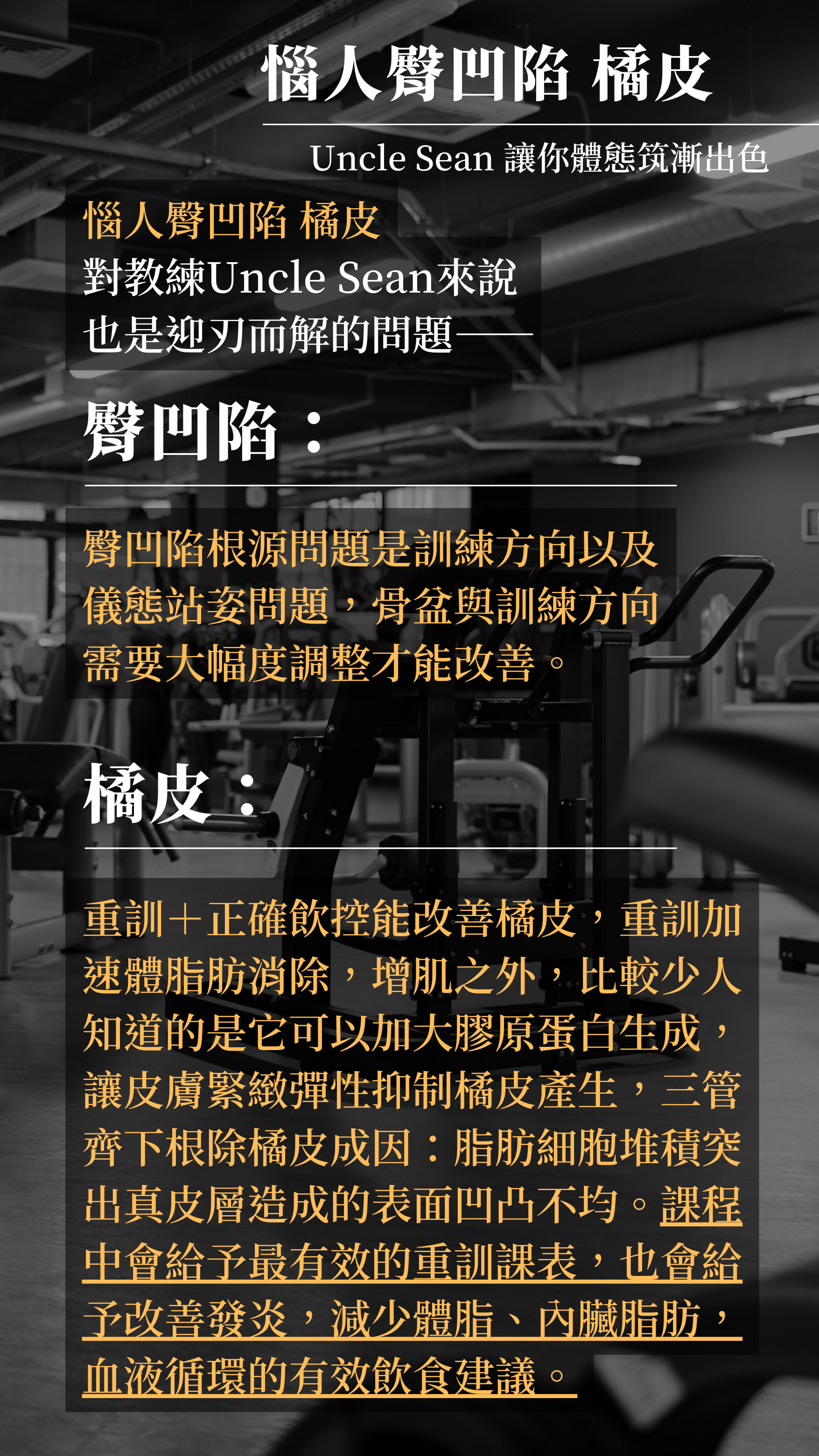 惱人臀凹陷 橘皮 – 對教練UNCLE SEAN來說也是迎刃而解問題